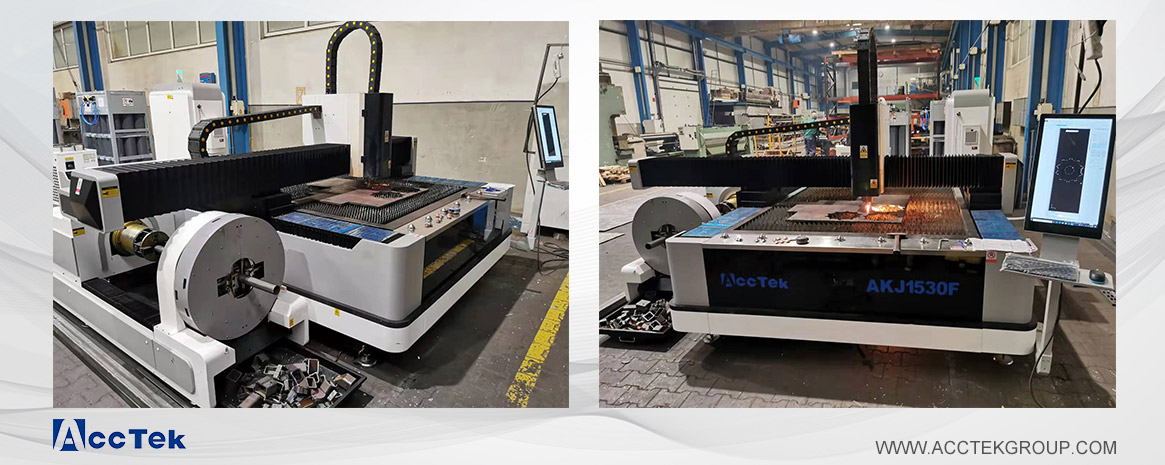 ACCTEK为波兰用户生产的这台带旋转轴的光纤激光切割机,不仅可以切割金属板,也可以高速切割金属管材料,可加工的材料更加多样化。下面介绍的是波兰用户选用的带旋转轴的光纤激光切割机AKJ1530F。如果您的店铺也需要金属切割设备,您可以将其作为参考。